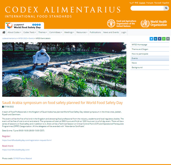 We are glad to see that our event is posted on Global Food Safety Day website by the FAO/WHO and Codex.