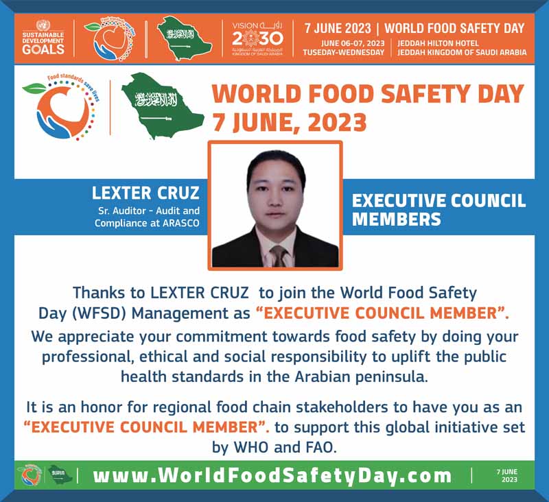Mr Lexter has 15 years in Quality Assurance Profession with 6 years’ experience Product Research and Development for Dairy, Meat and Poultry products and further processing operation. He has worked in leading organization such as Fisher Farms Incorporated, Zamil Foods, Nestle Co Manufacturer, Cargill Protein Asia and currently working in ARASCO