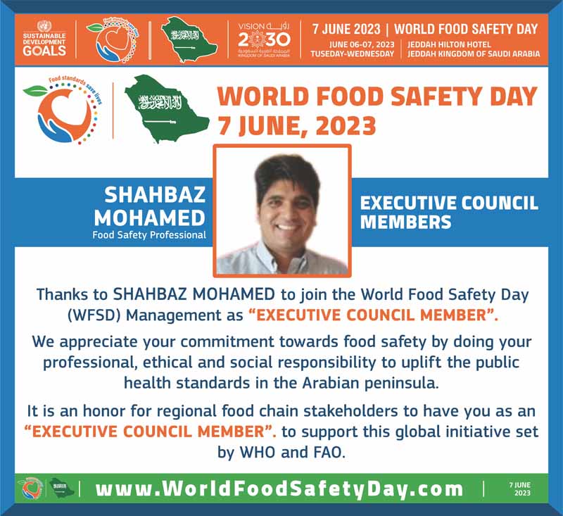 He is an experienced food safety professional with over 15 years of food sector experience, particularly in food safety and quality management systems. He is an active member of IAFP (International Association of Food Protection), Dubai Food Safety Google group. In addition to that, he is a member of the Food Safety Advisory Council of NSF International Michigan USA and was also a member of GFSI for Hygienic Design Technical Working Group.